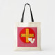 A sacola assistente dos cuidados com cruz do hospital e o ritmo cardíaco projetam. Presentes assistentes da apreciação dos cuidados bonitos.