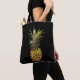 Esta sacola bonita indica um abacaxi marrom dourado maduro, suculento com as folhas espinhosos do verde ajustadas em um fundo preto.