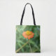 Um fim acima da fotografia de uma margarida alaranjada imprimiu em ambos os lados de uma sacola.