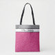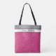 Esta sacola é mostrada com um impressão do brilho do rosa quente do falso do divertimento. Tem uma banda do brilho da prata do falso na parte superior com sua título, nome ou frase personalizada do favorito.