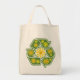 Promova recicl a consciência e o ambiente com esta sacola orgânica bonito que caracteriza um símbolo floral-temático do reciclar que cerca uma margarida amarela.