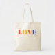 Introduza no mercado a sacola impressa com a palavra, amor é cores alegres.