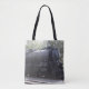 Um saco de tote com foto de um trem.