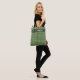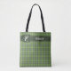 Shades of sage and olive green in an intricate plaid pattern makes this beautiful tote bag stylish. Personalize with your name and monograme in a dark green band and half oval near the top. Professional enough for the office, cute for school, terrific for shopping or at the beach.
