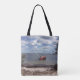 A cena neste Tote Bag é uma fotografia original de ZoeSPEAK de um barco a vela em águas rasas. Na foto, o barco vermelho é inclinado para um lado, emoldurado por manguezais, uma margem arenosa e um céu azul grande cheio de nuvens brancas e onduladas.