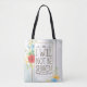 Tote Bag com uma escritura de citação inspiradora retrata um belo design floral moderno de aquarela com simples flores rosa, azuis e amarelas. Ele apresenta uma Bíblia encorajadora Verse Psalm 16:8, "Eu não serei sacudido."