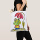 Bolsa Tote Sapo verde branco sob uma flor vermelha