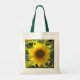 O girassol ensolarado é apresentado em uma bolsa versátil. Disponível em vários tamanhos e estilos, este saco de totas clássico adiciona um toque quente a comprar, viagem ou bolsas de valores. Girassol apresentado em ambos os lados do saco.