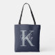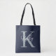 Bolsa Tote Script do Monograma Azul do Marinho Moderno