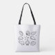 Um saco de tote com um design de joabt. A design mostra conchas organizadas em um padrão.