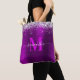 Crie sua própria bolsa de compras de monograma, personalizada por uma dama de honra. Folha fina colorida com gradiente roxo e gráfico digital brilhante prateado. Monograma contemporâneo magenta e branco com design de caligrafia elegante estilo assinatura. Você pode personalizar e alterar o estilo ou a cor da fonte conforme preferir. Todos os efeitos brilhantes e brilhantes do cetim vão ser impressão como uma foto no seu presente.