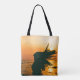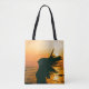 Bolsa Tote Silhueta de garota, pôr do sol do mar, liberdade.