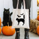 Bolsa Tote Silhute de Gato Assustado Preto com Bats Halloween