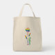 Saco de tote para mercearias ou o que mostra um rosa adorável colorido nas múltiplas sombras da bandeira Orgulho gay do Arco-íris. Stem lê ORGULHO GAY, também nas cores da bandeira. Adicione um nome para personalizar para você mesmo ou um presente. Design mostra na frente e atrás em posição vertical.