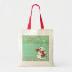 Esta bolsa de tote de Natal apresenta um boneco de neve e flocos de neve. Os designs são de ilustrações originais.