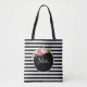 Bolsa Tote Sra. com Black & White Stripes e Flores