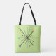 Esta bolsa de tote tem um design moderno do século médio de uma explosão de estrelas atômica em uma paleta retrorcolorida de laranja, amarelo, azul, verde e cinza.