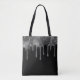 Shiny nail polish spills, in black and white, are on the front and back of this tote bag.
