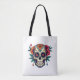 Saco de na moda com impressão de crânio de açúcar ousado, inspirado pelos designs vibrantes e intrincados do Dia dos Mortos. Perfeito para carregando de seus recursos enquanto adiciona um toque de charme cultural e talento suave à sua roupa.