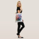 Linda bolsa de tota botânica floral com um belo conjunto de flores. Esta bolsa de tote tem cores de flores rosas, roxas e azuis, que estão arranjadas em buquê de estilo encantador.