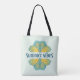 Saco de verão bonito com uma bela ilustração de duas borboletas em azul e amarelo e o texto divertido Summer Vibes.
