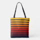 Design striped multicolorido inspirado por um pôr do sol. Design minimalista em azul escuro e diferentes tons de rosa, vermelho, laranja e amarelo.