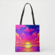 Uma pintura de um pôr do sol roxo e rosa vibrante sobre um oceano calmo (Esta Design Feita com IA). Faça a ordem hoje e encare a alegria de Comprar!