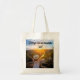 This is a really simple tote for simple people going to college. It has an image of sunset with a girl and a customizable quote as per your choice.
