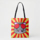 face de rabisco de rato sobre fundo vermelho e amarelo de estrelado em toda a impressão tote de saco