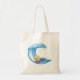 Um surfador cavalgando seu conselho em uma grande onda. Este design parece realmente eficaz nesta Tote Bag