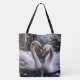 Bolsa Tote Swans Românticos em uma Terra Maravilha de inverno