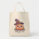 This roomy tote is perfect for Halloween errands or treat hauls! Featuring a soft pastel pumpkin in a witch hat, this bag is both cute and practical. Personalize with a child’s name or family name.
