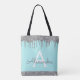 Bolsa Tote Teal Aqua Silver Glitter Sparkle Monograma Elegant