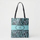 Bolsa Tote Teal e Preto de Flores-de-Zebra Monogramas Stripe
