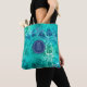 Bonito imagens azuis e lacrimogêneas das palmas formam um padrão em um plano de fundo de gradiente de luz infuso na superfície desse saco de tota. A frente tem um círculo azul correspondente com o seu monograma em branco.