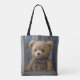 Bolsa Tote Teddy Bear Gazing Out of a Rainy Window