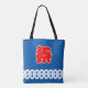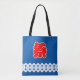 Esta sacola happi-casaco-inspirada acessível é decorada com um teste padrão chain japonês clássico e o kanji para o "festival!" Aperfeiçoe levando seu material ao redor em Obon! Abra o editor completo para adicionar o texto ou mudar a cor do saco azul. Seja certo mudar ambos os lados.