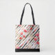 * Sacola floral popular na moda corajosa moderna com um teste padrão diagonal de cursos da escova do preto e do ouro em um fundo branco. Há flores vermelhas das papoilas sobre este design corajoso emocionante chique feminino legal.