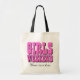 As meninas weekend o texto personalizado | da sacola do partido para o destino ou o tema. Bonito para namoradas, noite das meninas para fora, reunião da reunião das mulheres, viagem das férias das senhoras ou festa de solteira para noivas e damas de honra wedding. Texto customizável elegante. Cor cor-de-rosa e preta.