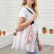 Saco de tote vertical listrado, rosa-bebê e branco.
