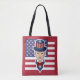 Saco com ilustração do Tio Sam com a bandeira americana como pano de fundo, 4 de julho design patriótico por Maxi Harmony / Radka Kavalcova, versão vermelha
