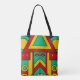 uma colorida arte espiritual tiki, asteca, que torna a bolsa ainda mais atraente. Experimente esta bolsa de tote e partilhe os seus comentários.