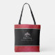 Este saco de totas é mostrado em dois esquemas de cores. Banda vermelha e prateada brilhante, a cores vermelha e prateada, na parte superior e inferior, com alças pretas de precinta. Saco preto e em ambos os lados é uma coroa atraente com rodadas de cor vermelha suja, como rodadas. O texto de exemplo diz "Miss Kent Valley Rodeo Queen 2019". Personalize este saco ou comprar de tote conforme projetado.