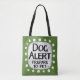 Um design de animais tipográficos, irreverente e fofo, que diz "Alerta de Cachorro, Prepare-se para Pet". Ele apresenta texto preto e vermelho em um retângulo branco com pontos brancos engraçados e brincalhões ao redor dele, tudo em um fundo de cinza.