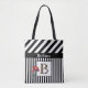Bolsa Tote Trendy Modern Stripes Monogram Name