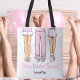 This personalized white tote bag is the perfect favor for a trendy Sleep Under or pajama party. Featuring the same chic illustration of three stylish girls shown from the waist down in ruffle pajama bottoms, fluffy-trim PJ pants, and cozy slippers or furry boots, this design captures all the fun of a slumber party—without the overnight stay.