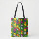 Esta bolsa de tota tem um design moderno do século médio de triângulos sobrepostos em cores floridas que correm verticalmente num campo de verde.