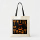 "Trick or Tratat", saco de tote orçamental com abóbora esculpida brilhante.