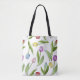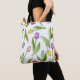 O design do produto apresenta um padrão de flores tulipas coloridas em roxo, vermelho, rosa, azul e amarelo. Esta ilustração botânica faz uma elegante bolsa de tote moderna e única - Ideia de presente para aniversário, Páscoa, Dia das Mães, casamento, e muito mais!