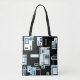 Turquesa, Black and White Blocks Funky All Over Impressão Tote Bag (Blocos brancos e negros) para adicionar à sua coleção de bolsas para fins específicos/compro / todos os dias. Um presente de excelente / presente ideia para todos que amam formas geométricas, cores alegres, designs personalizados. Cada lado é ligeiramente diferente.